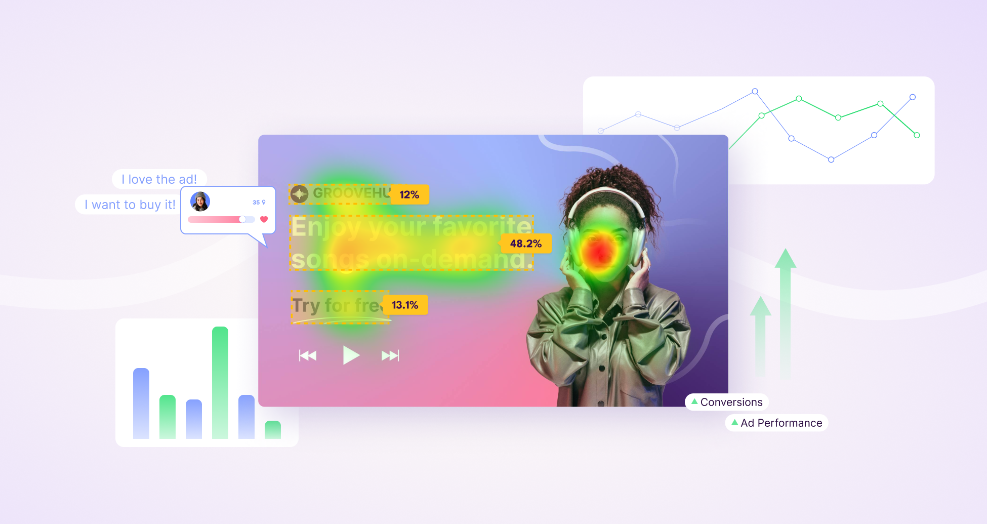 Eye-tracking studies and AI tools like Neurons ensure your ads communicate your key messages. These tools help you measure how effectively your assets capture and hold attention, and where that attention lands on your visuals.