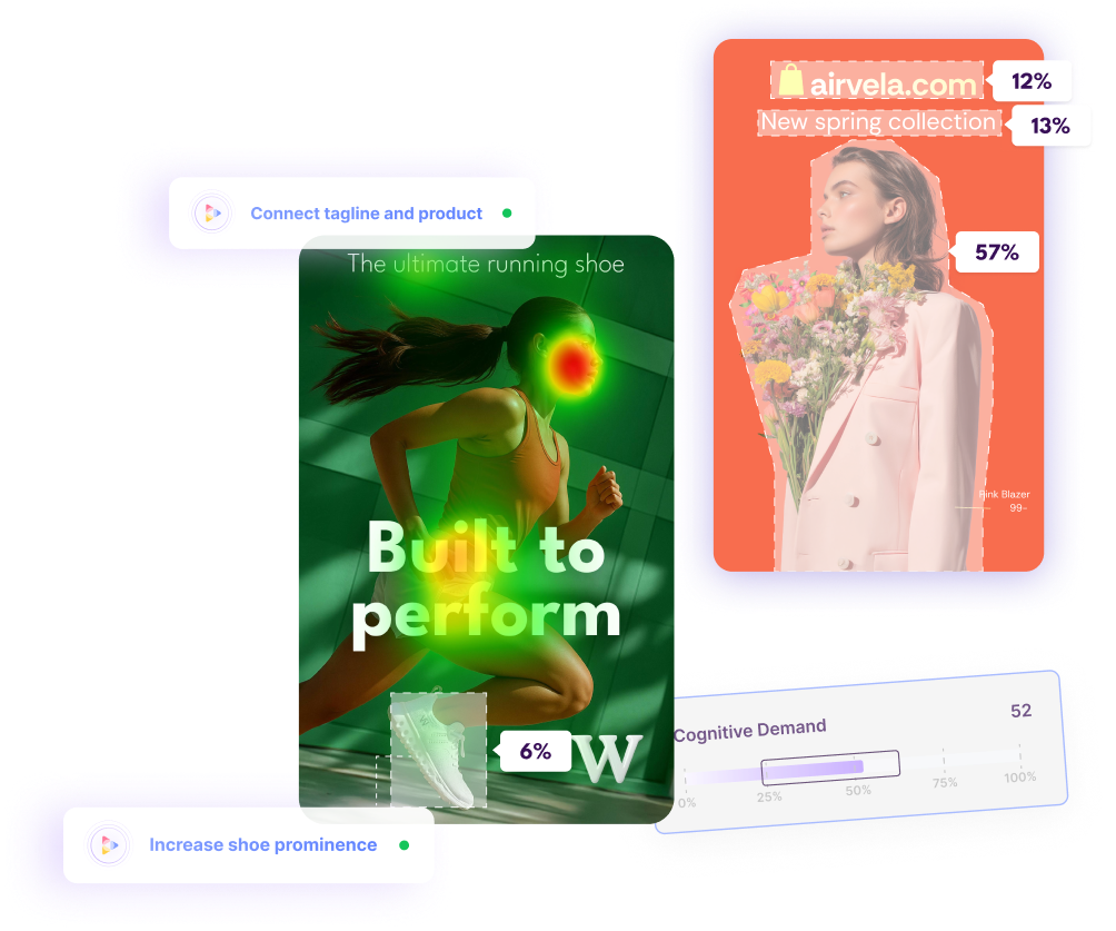 Get rapid feedback on your visuals, and optimize ads with fast AI recommendations. Tap into 20+ years of neuroscience research.