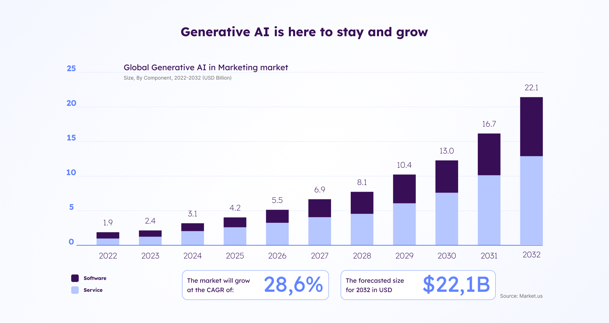 In the same year, Omnicom Group rolled out its first generative AI tool, partnering with Microsoft. This AI-powered virtual assistant is designed to help ad professionals with everything from compiling audience insights to crafting media plans, making their work easier and more efficient.