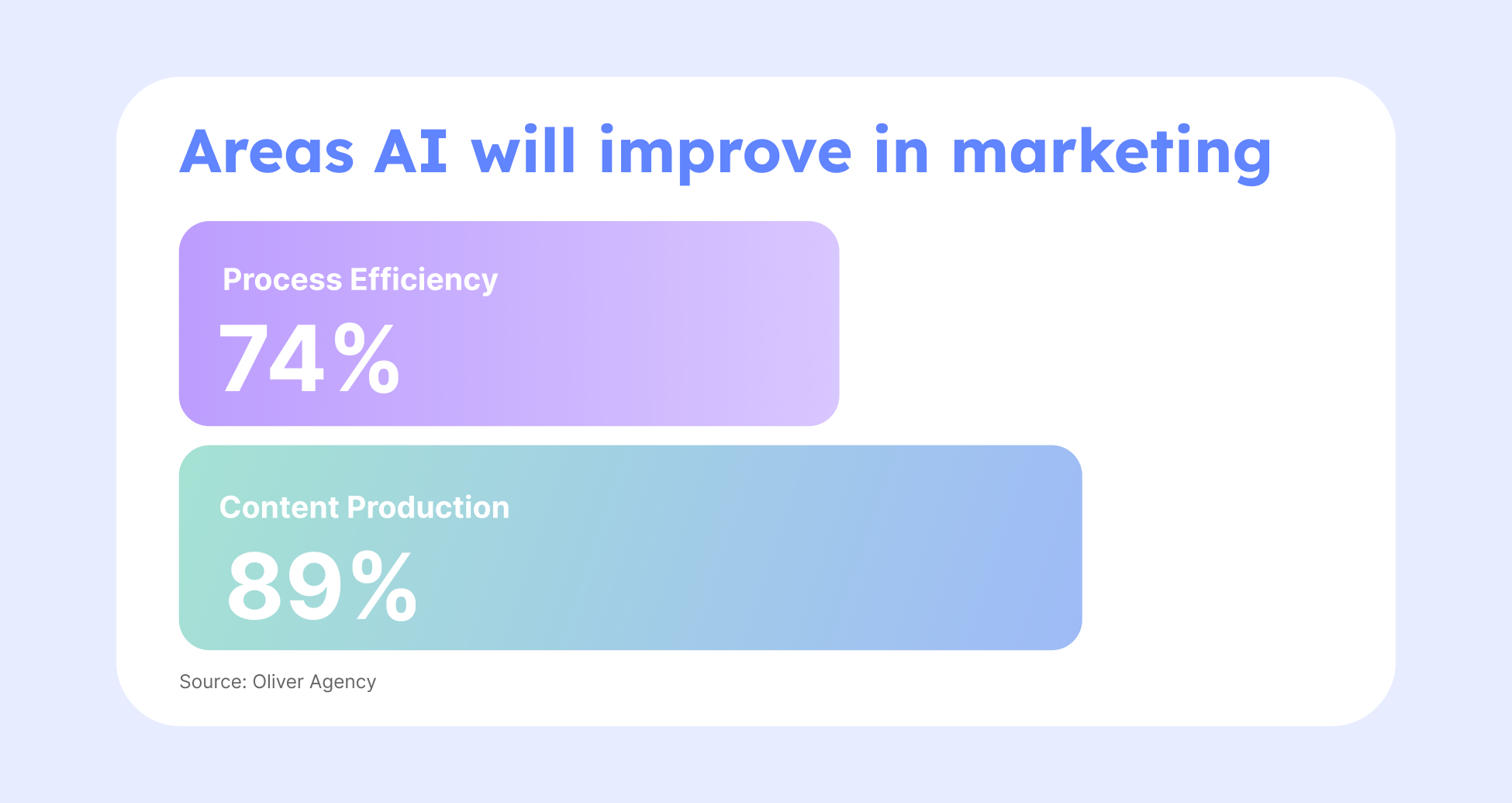 A whopping 89% of marketers from the survey link AI to the improvement of operational processes and process efficiency.