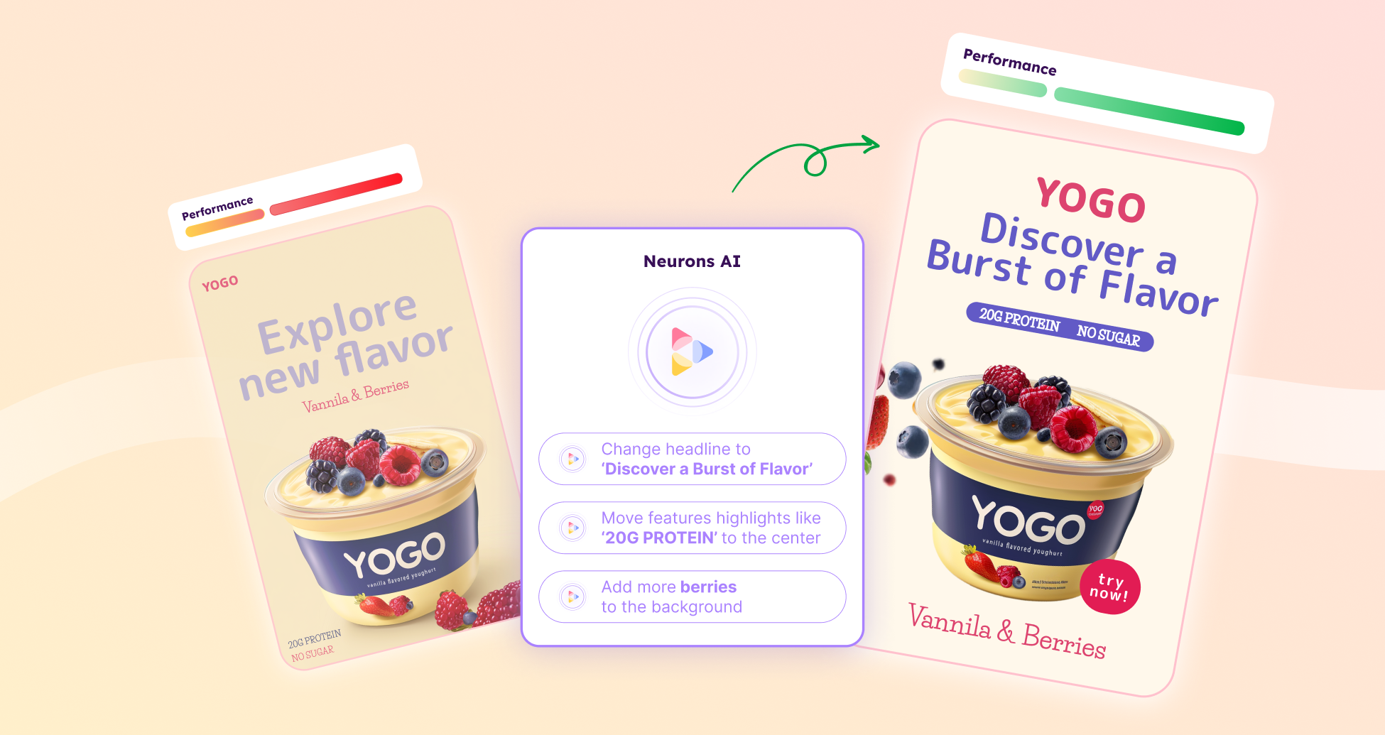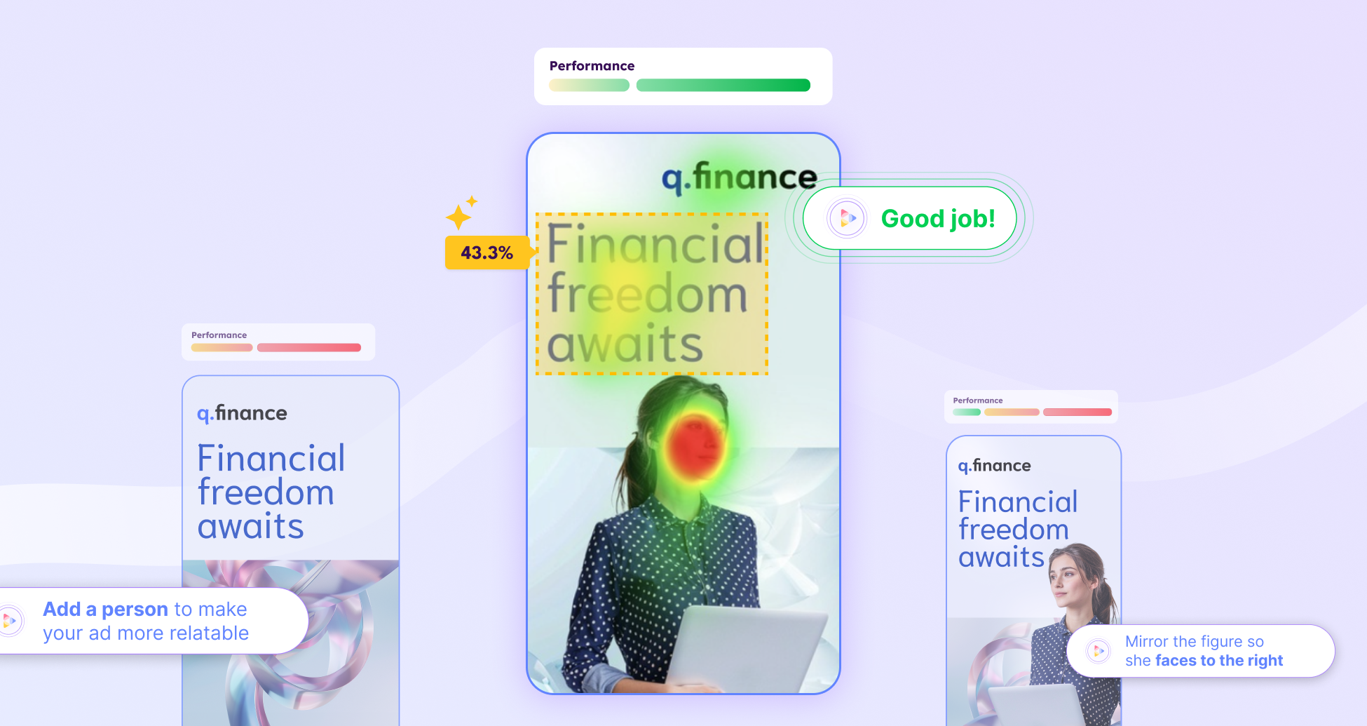 We’re giving you clear, actionable insights on how to improve your creatives with the only LLM taught to solve the ‘make it pop’ problem.