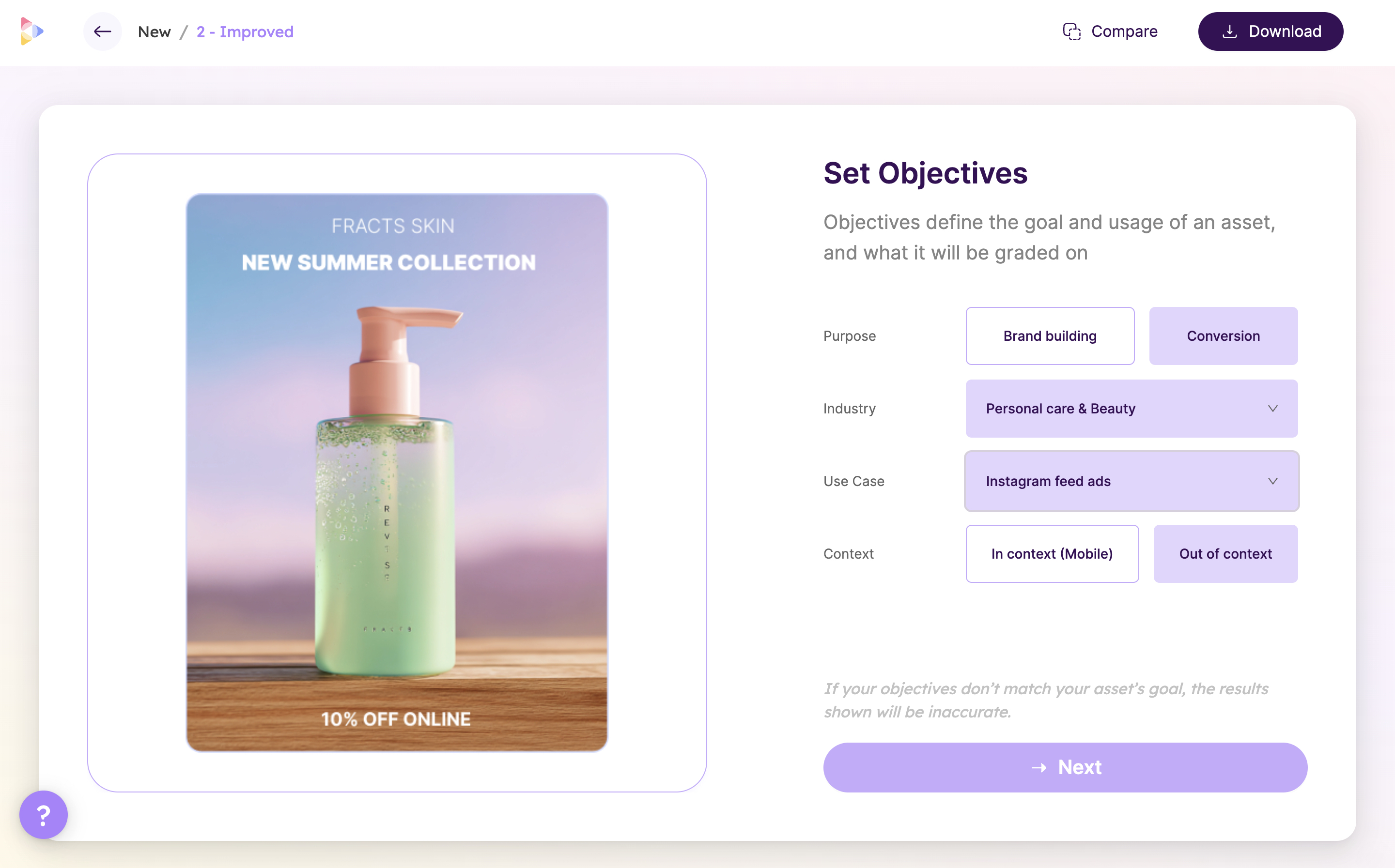 Our new Guided Setup Flow helps you define your creative goal, pick the right format, and label the most important areas (like product, CTA, headline, and more).