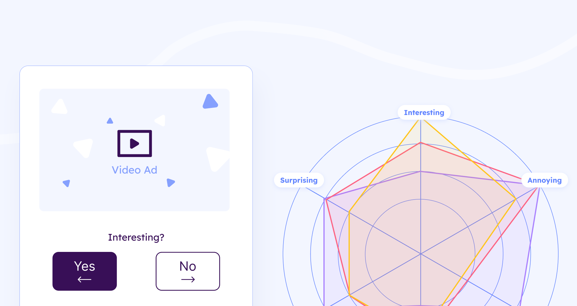 A mix of surveys and fast response tests help you assess your ad's impact on your customers. This combination provides a comprehensive view of how your advertisements affect viewers on a conscious and subconscious level.