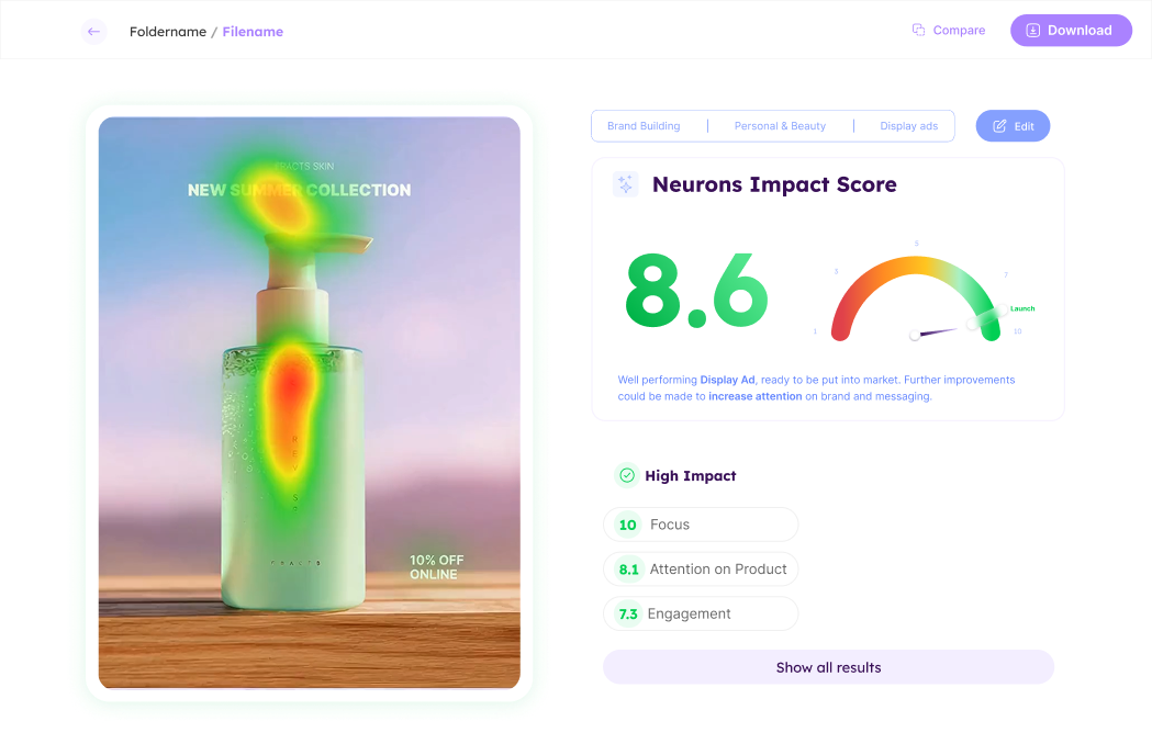 Get rapid feedback on your visuals, and optimize ads with fast AI recommendations. Tap into 20+ years of neuroscience research.