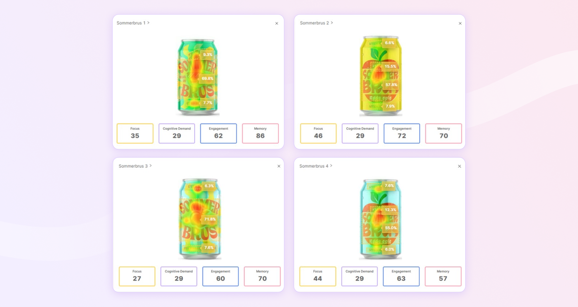 “Typically, we use it to get an early read on new or existing packaging designs, looking at visibility, attention, and how we compare to competitors,” Hannah explains. “This allows us to benchmark designs and see how well they perform in a shelf context.”