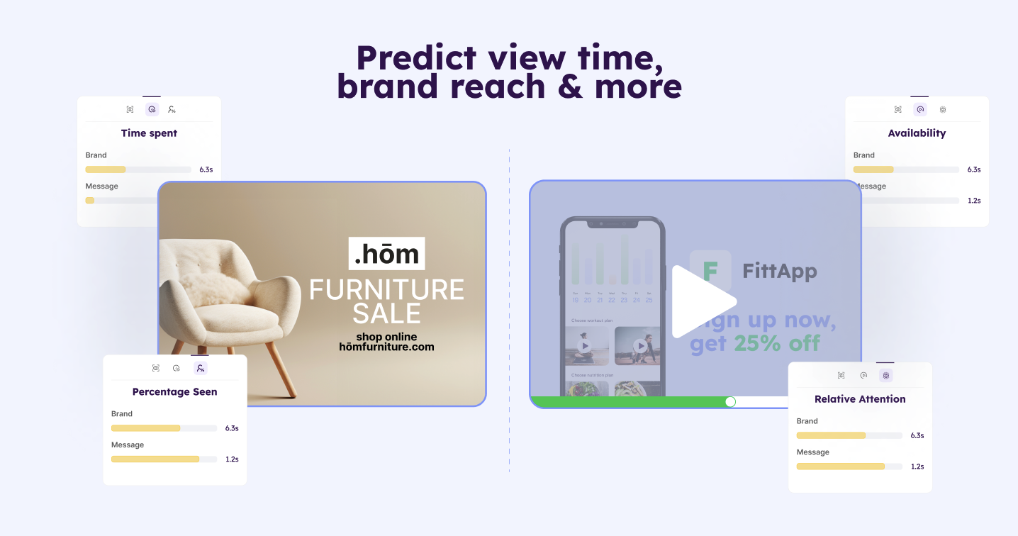Generated for any Area of Interest (AOI) on images and brand assets on videos, these scores allow you to evaluate the performance of every key element in your creatives.