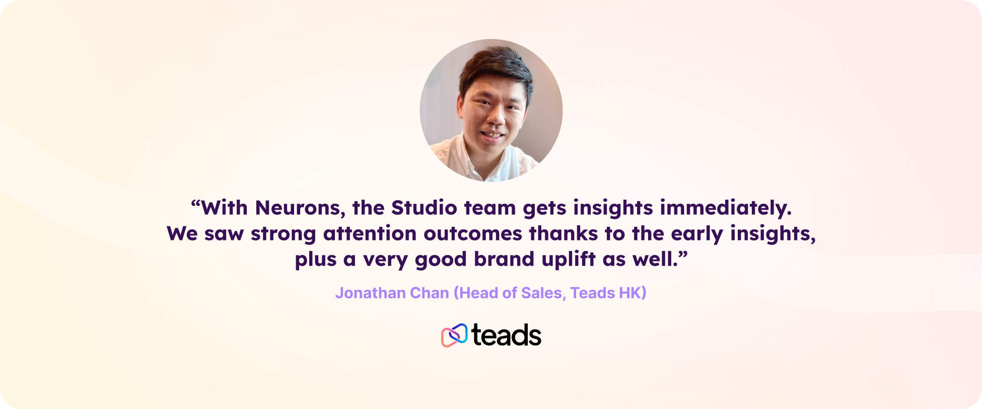 “We usually relied on post-campaign testing or A/B experiments to understand which creatives performed best,” shared Jonathan Chan, Head of Sales at Teads Hong Kong. “But those methods are time-consuming and costly. Without Neurons, we would have to create multiple versions, launch them, and then wait for results. With Neurons, the Studio team gets insights immediately. We saw strong attention outcomes thanks to the early insights, plus a very good brand uplift as well.”