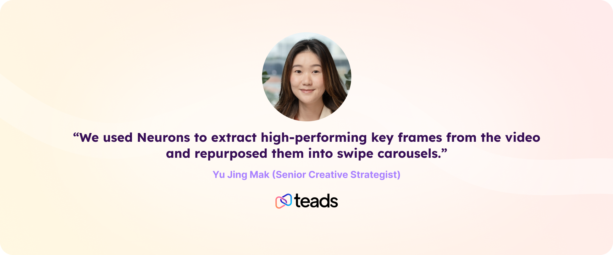 And when static assets were limited, the team leaned on Neurons to get more out of what they had. “We had quite limited static assets to work with,” shared Mak “So, we used Neurons to extract high-performing key frames from the video and repurposed them into swipe carousels.”
